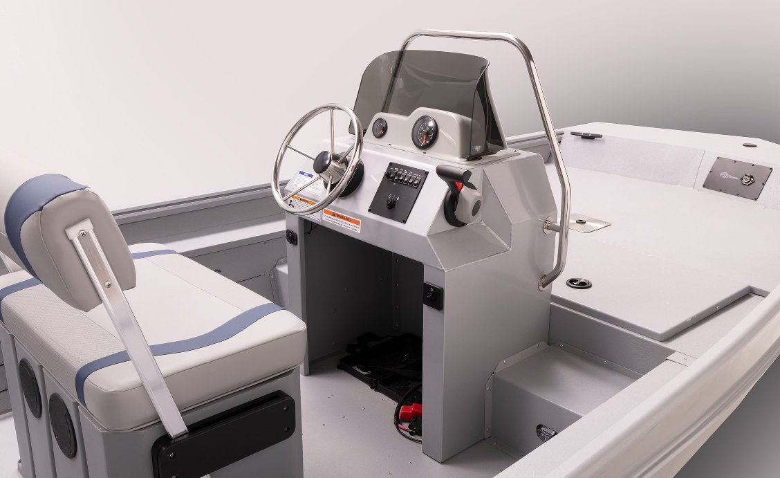 Console includes stainless steering wheel and grab rail, Yamaha controls and key switch. |