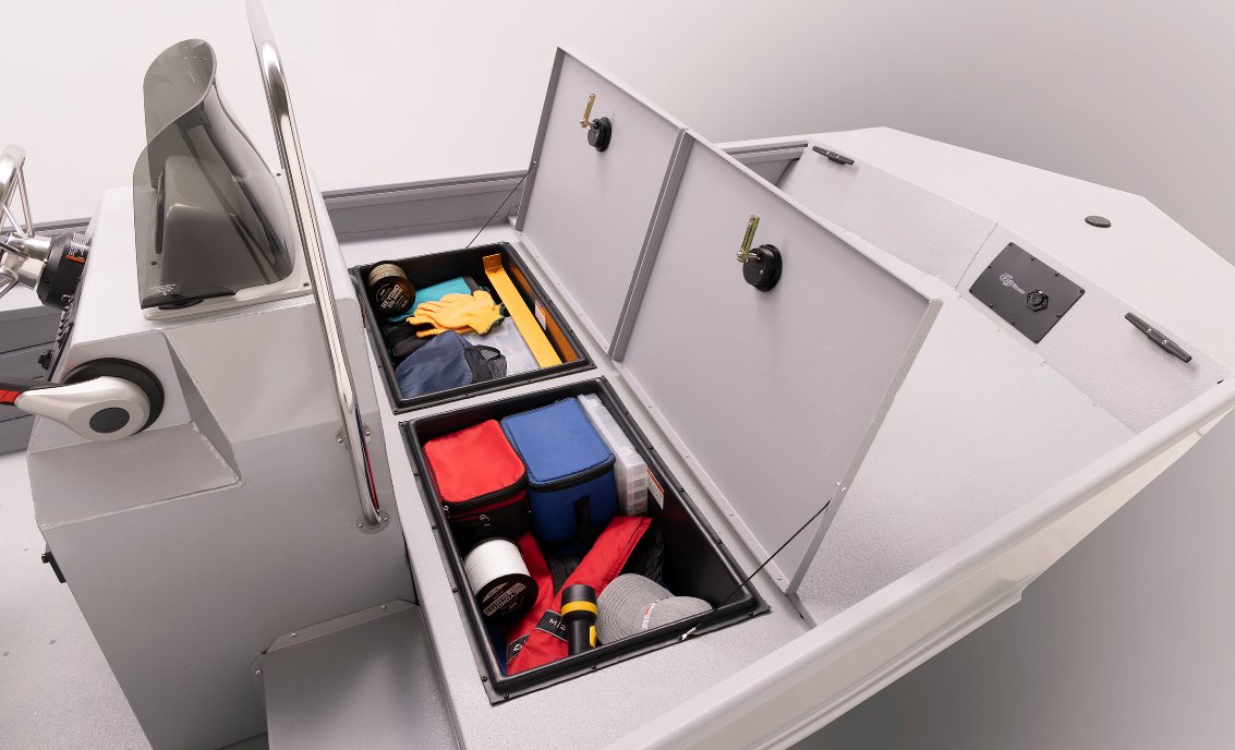 Lockable storage with compression latches gives the angler plenty of storage. |