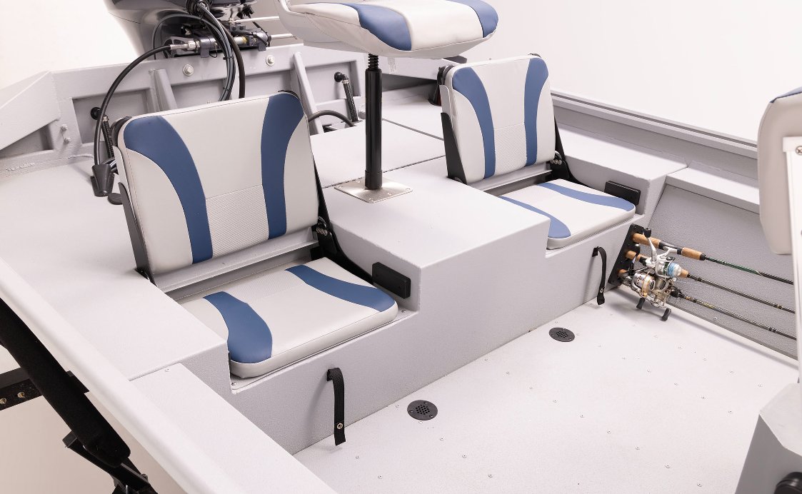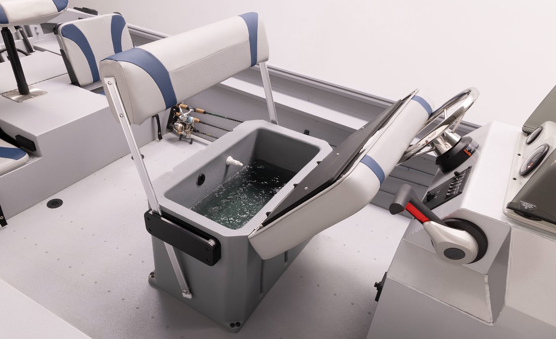 DOUBLE WIDE HELM SEAT Double wide helm seat has an easy access 10" x 29" 19 gallon live well. |