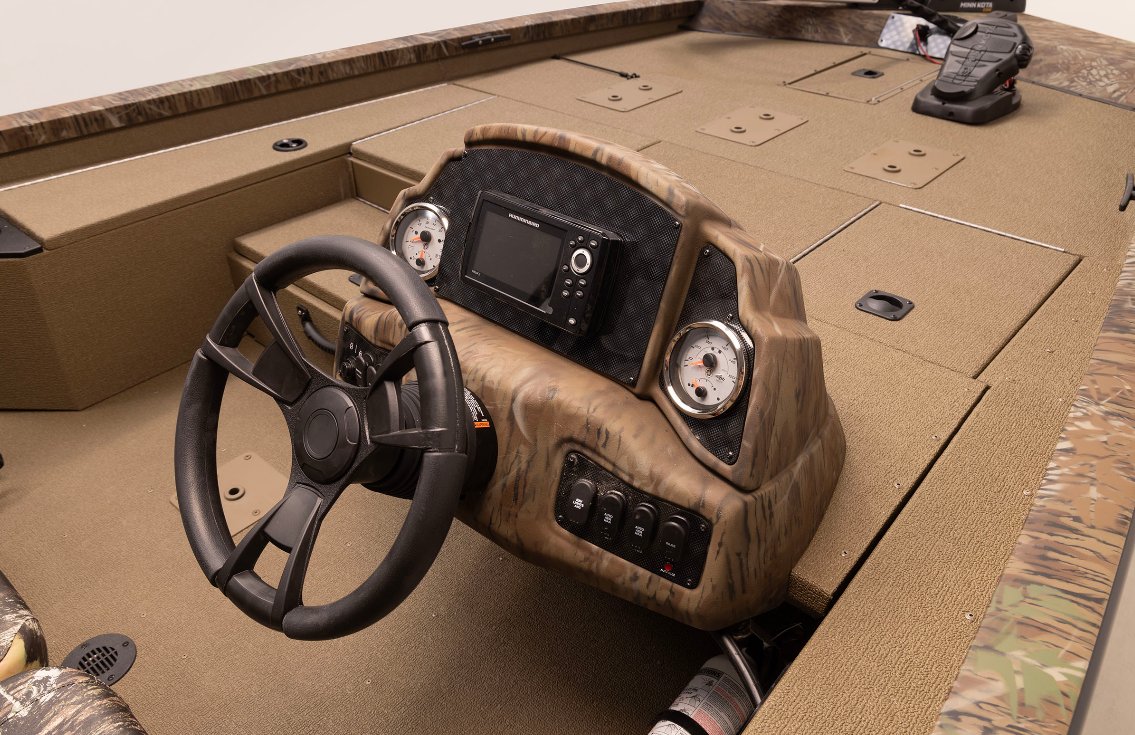 Console is suspended and has plenty of leg room underneath to stretch out your legs. Console has in-dash Humminbird® HELIX5 as standard equipment. Console now has room for up to 9" display on the dash. |