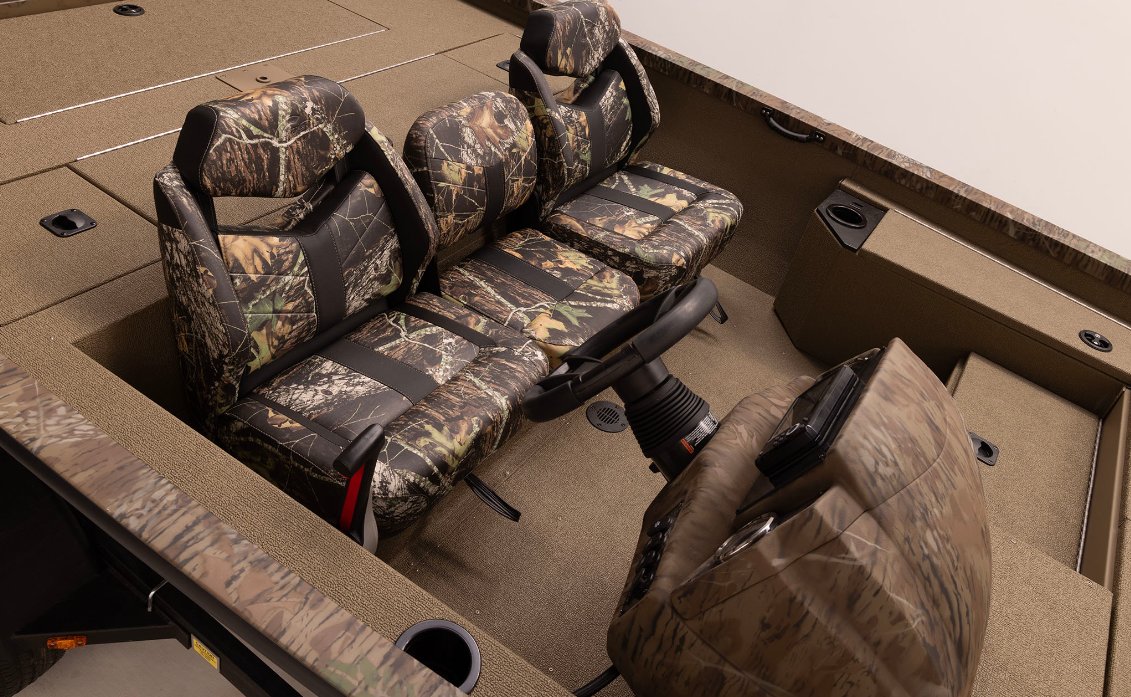 Side by side fishing seat locations are found in the bow. Boat comes standard with two high back fishing chairs. |