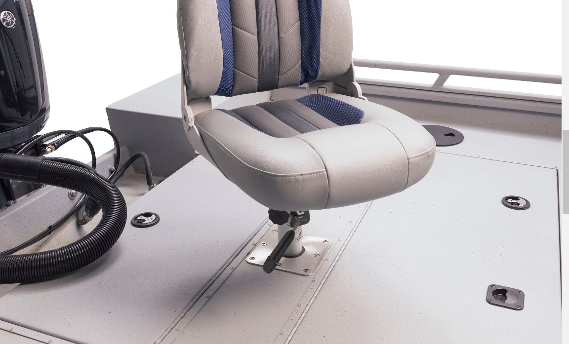 Comfortable fold-down fishing seats are movable to bow or stern pedestal bases. |
