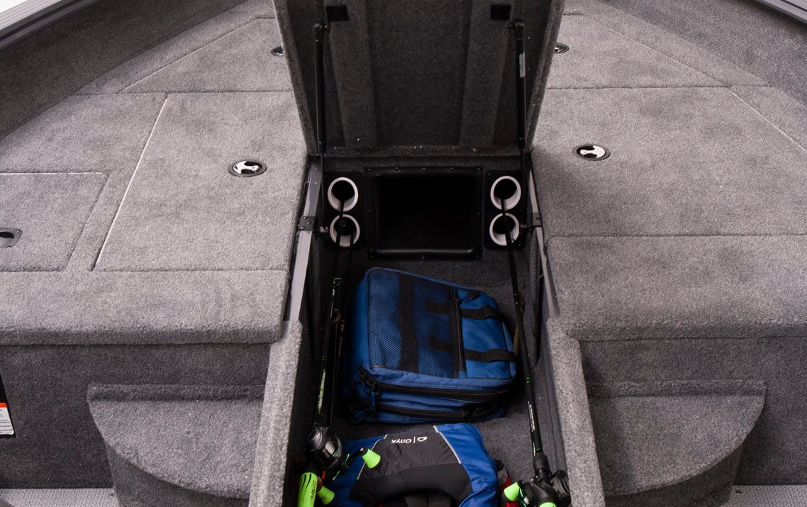The center rod locker organizes and protects your rigs with organized rod holders, and still has room for extra gear. Dual fold-down cup holders and step-up to front deck add even more convenience. |