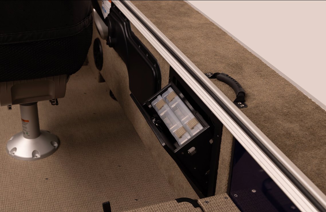 Tackle storage boxes are conveniently found on the starboard side right behind the captain's chair. |