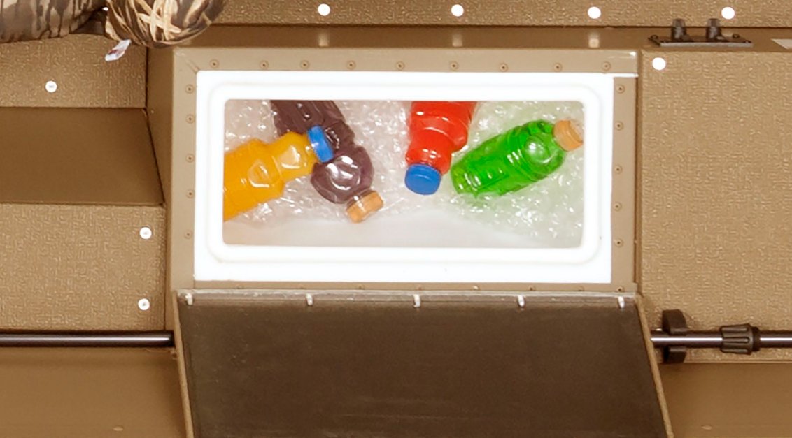 Port side storage can double as a cooler to provide quick access to your favorite beverage. |