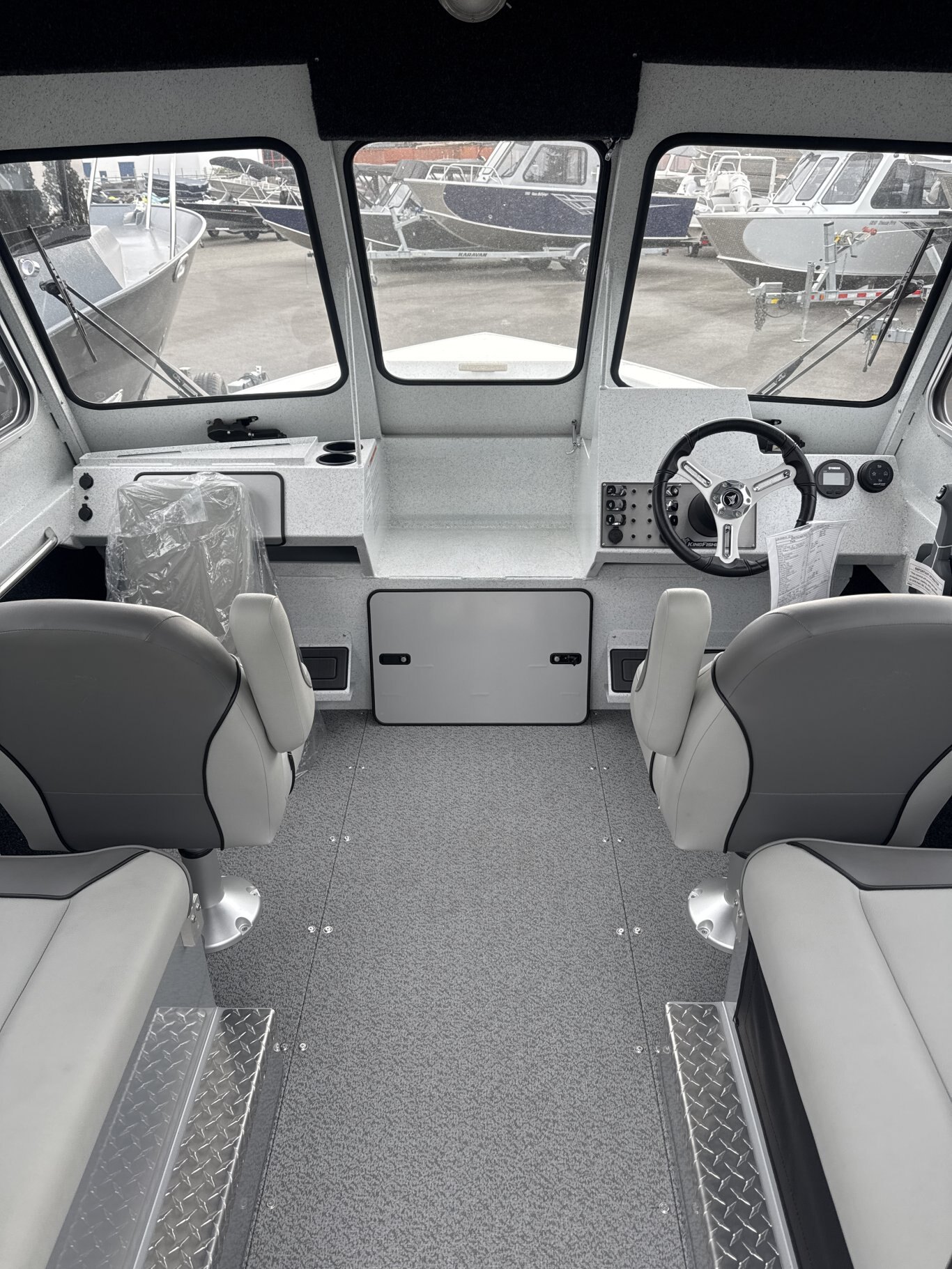 - 2 Fishmaster XL seats with pinchless hinges on permanent pedestals