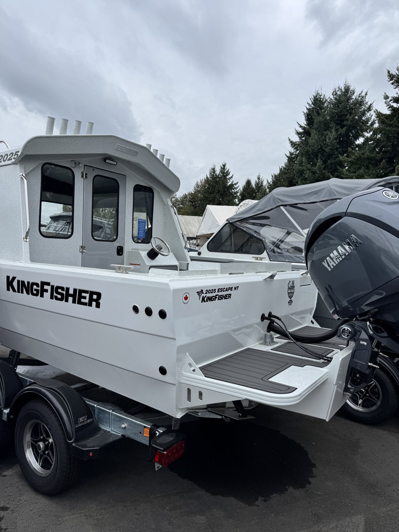 - EZ Loader 4000 lb factory matched galvanized tandem axle bunk trailer with electric drum brakes, swing tongue & custom tie down straps