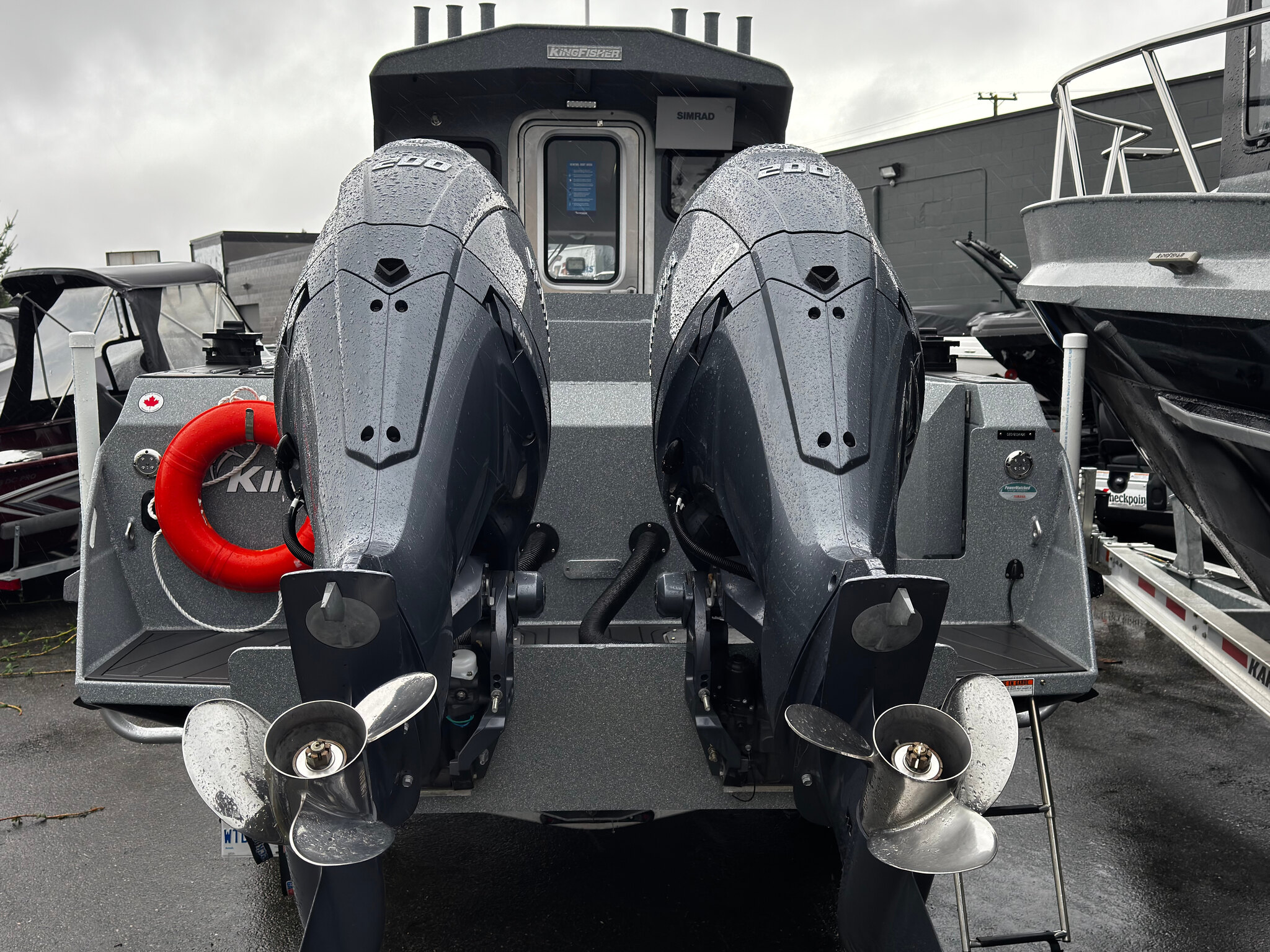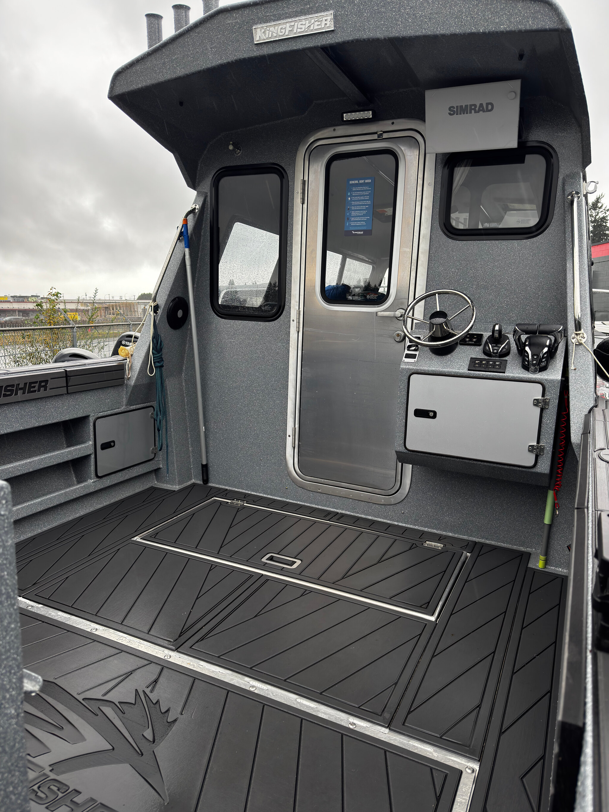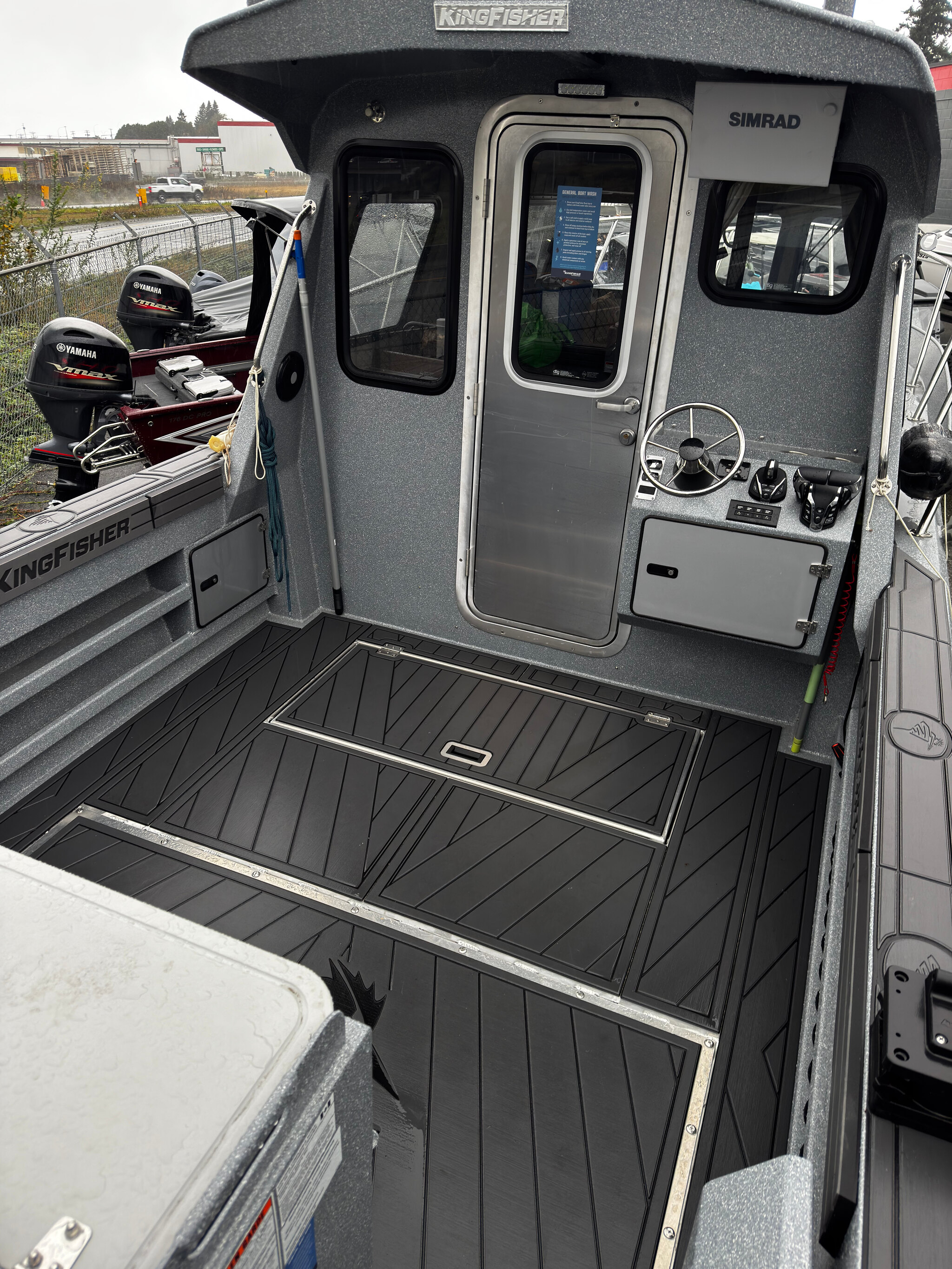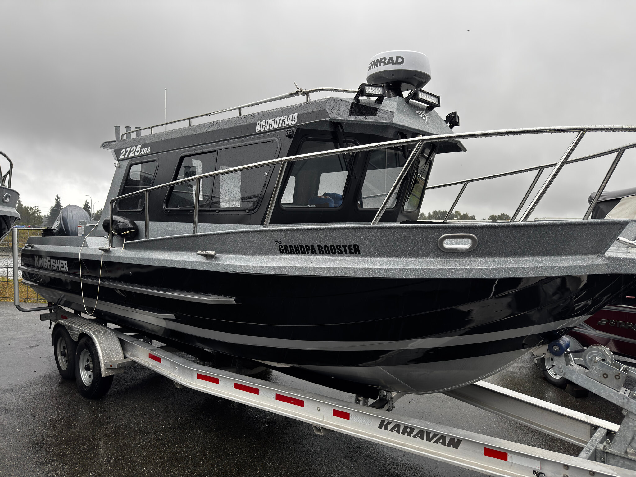 Includes Karavan 500lb Aluminum trailer, 16" SIMRAD at main helm, 12" SIMRAD at rear helm, SIMRAD RADAR, SIMRAD VHF, wired for DownRiggers