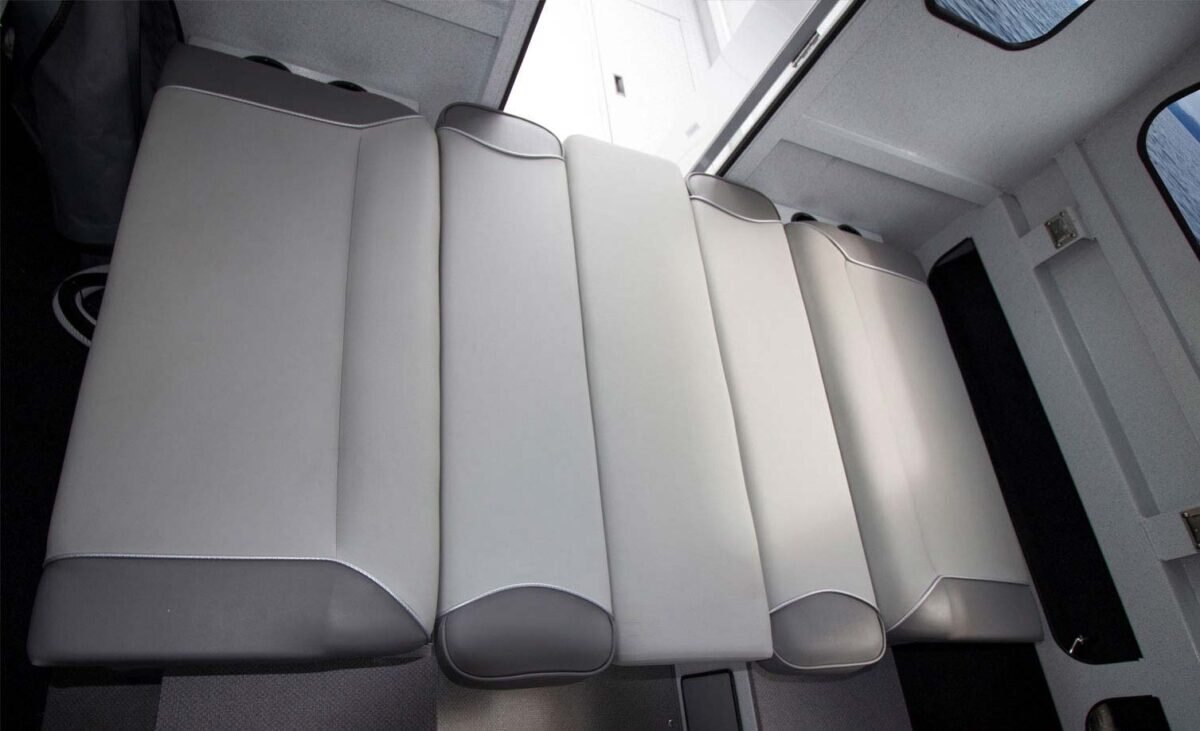 Single piece hull sides integrated into the swim platform with upswept bow and wide formed flat gunnels