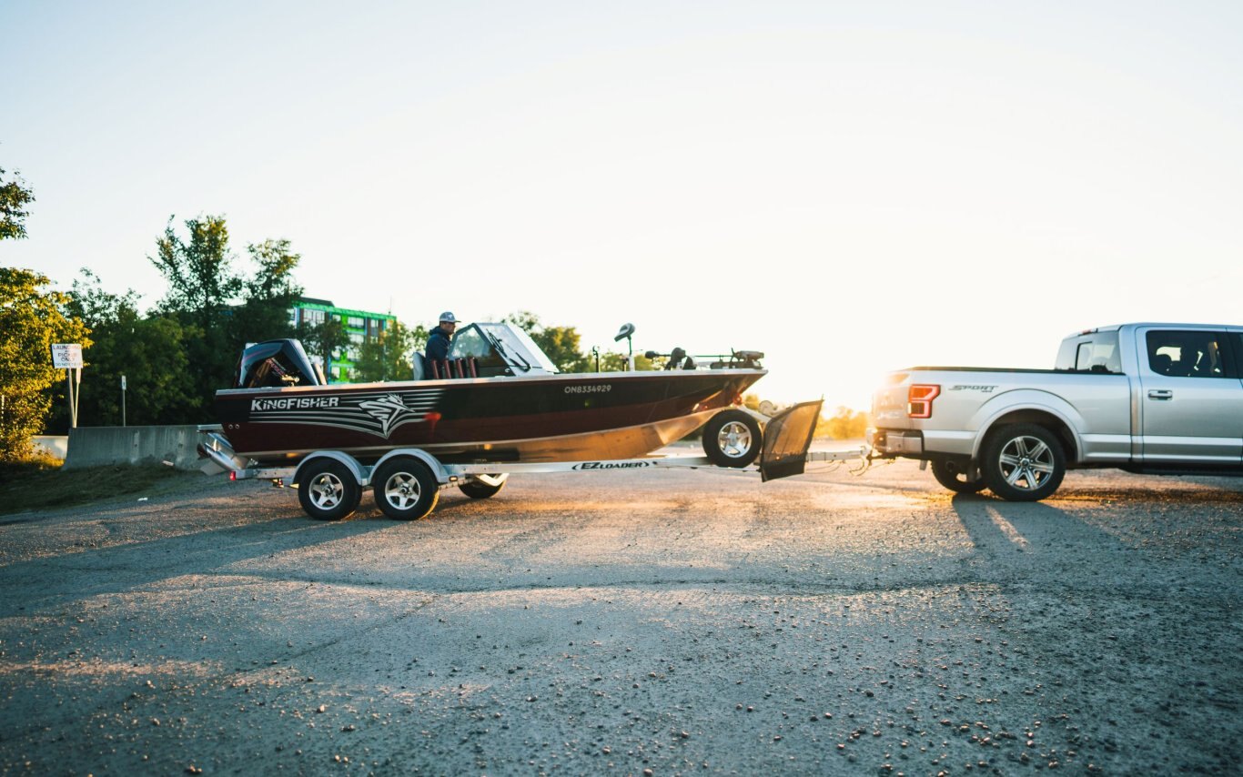 Trailer / Standard with Boat Package 4000# tandem-axle bunk trailer, surge disc brakes, swing tongue, alum wheels