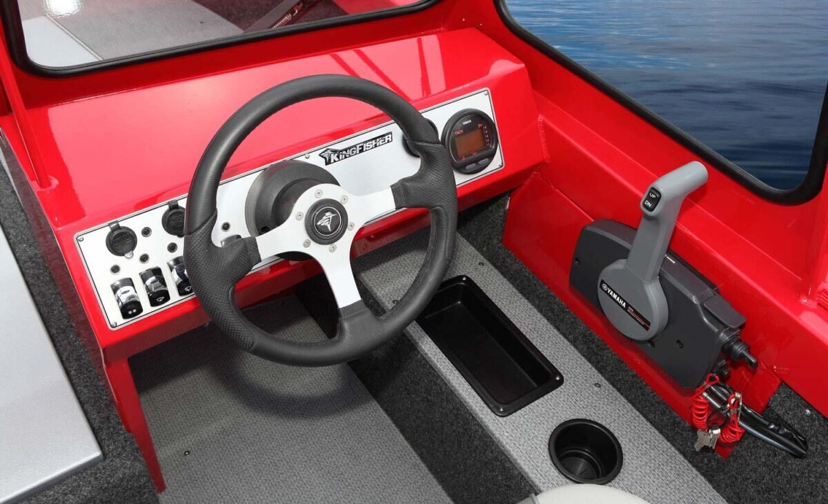 Armorcoat painted windshield, bow/aft gunnels & interior with high gloss clear coat Full side painted feature color with painted pro accent stripe KingFisher Pro vinyl graphics package