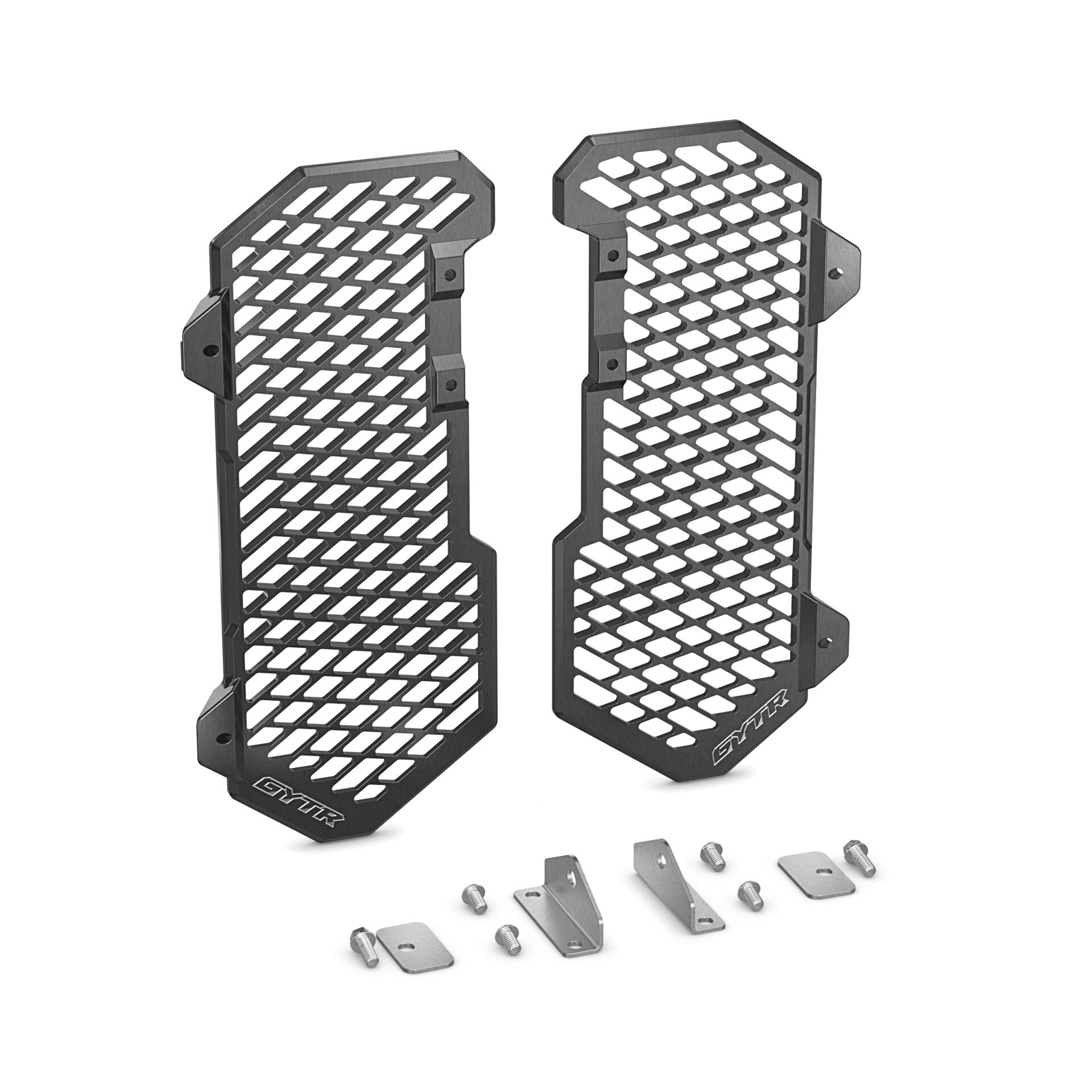 The GYTR Billet Radiator Guards are designed to protect the radiators from front and side impacts and core punctures.