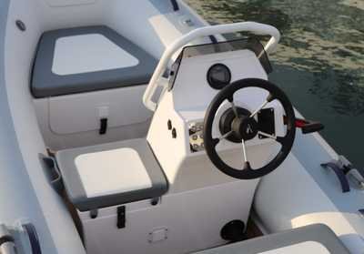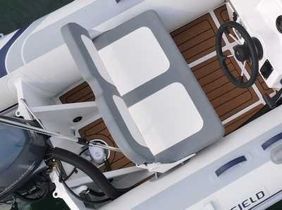 Standard Features High tensile chromated & powder coated aluminum hull – Luxury GT Console System with steering – Bow and stern Pole Lights – LED Deck Lights – Bow locker (fits 6 gallon fuel tank) – Bow Cushion – Self-draining cockpit – ORCA® Hypalon or Valmex® PVC tube – Welded seams (PVC) – Flush mount non-return valves – Bilge pump attachment point – Integrated transom supports – Lifting points and towing eyes – Tow bridle points – Non-slip flooring – Heavy duty rub strake – Full length keel guard – Tank strap kit – Highfield dry bag – Foot pump, oars, repair kit |