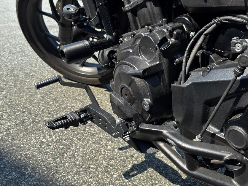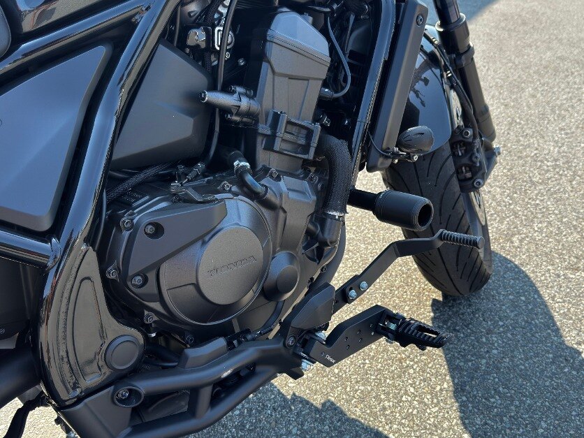 SeatingTo ensure long-distance comfort and easy operation of foot controls, the Rebel 1100’s footpegs are positioned mid-bike. There’s even an accessory seat available that pushes the seat pocket forward by 25 mm to allow for better reach to the footpegs and handlebar for riders of shorter stature. |