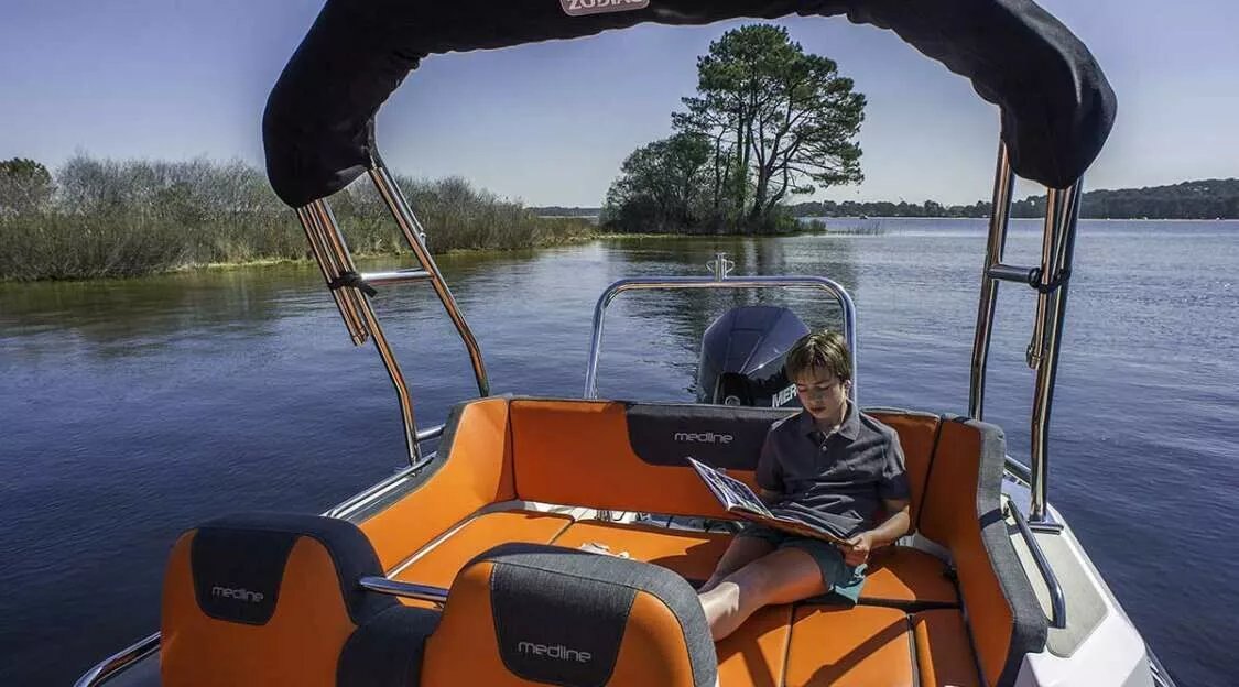 MEDLINE 6.8This our Best-Seller ! Not too small, not too big. Up to 14 people onboard for amazing moments with your friends and family. We thought about your comfort above all : A great sundeck area, a super user-friendly rear saloon, many storage compartments for your wakeboard and water ski. Our mission: Retreat, Fun and Relaxation! Created for your personal escape, the Medline 6.8 is THE perfect boat to share precious moments with your family and friends. Designed to enjoy long days on the water, full of fun and memories, It will delight any passenger with it’s exclusive comfort and onboard security. And the icing on the cake: it’s signature hull provides high stability even on the roughest of seas. |