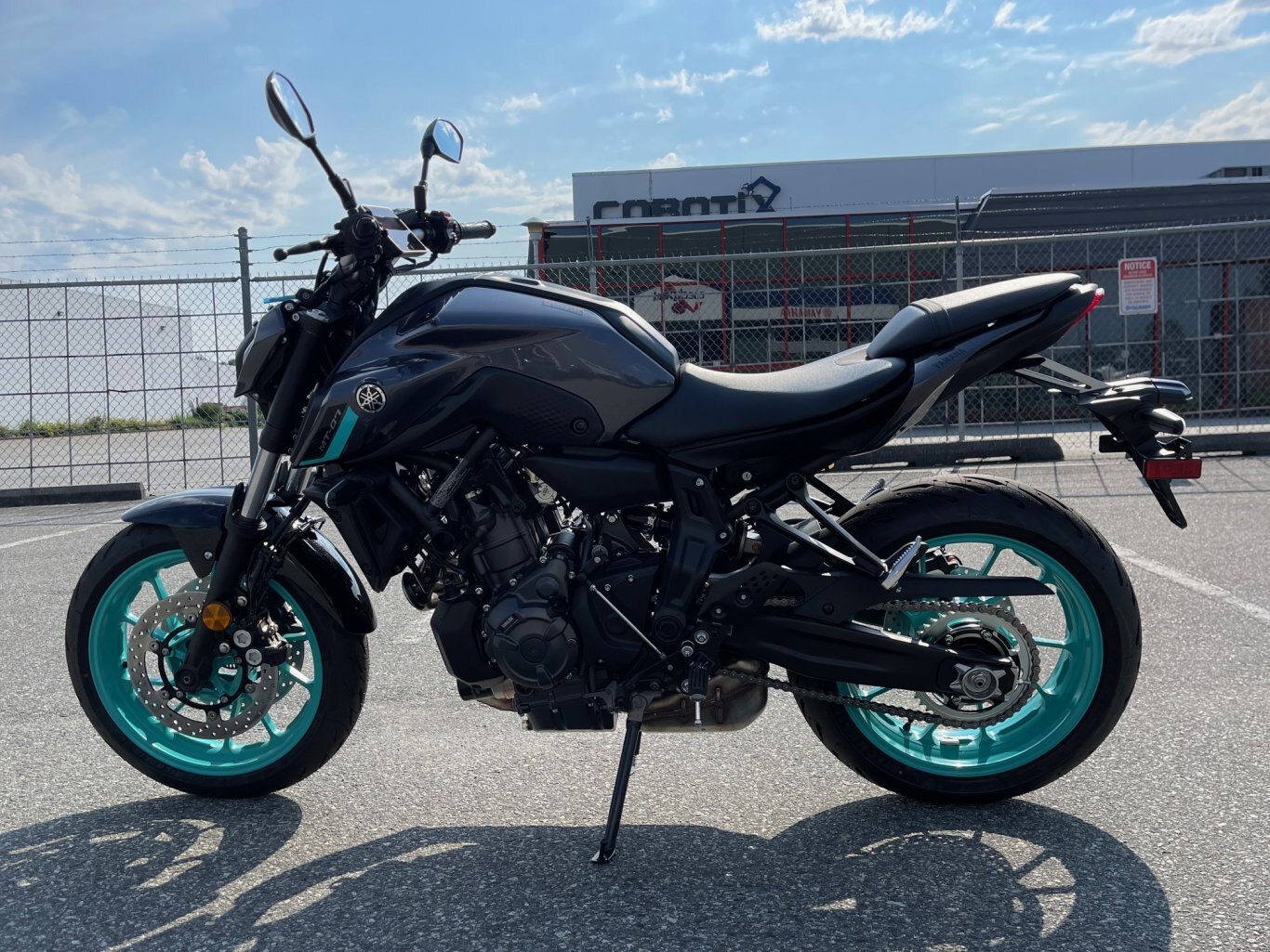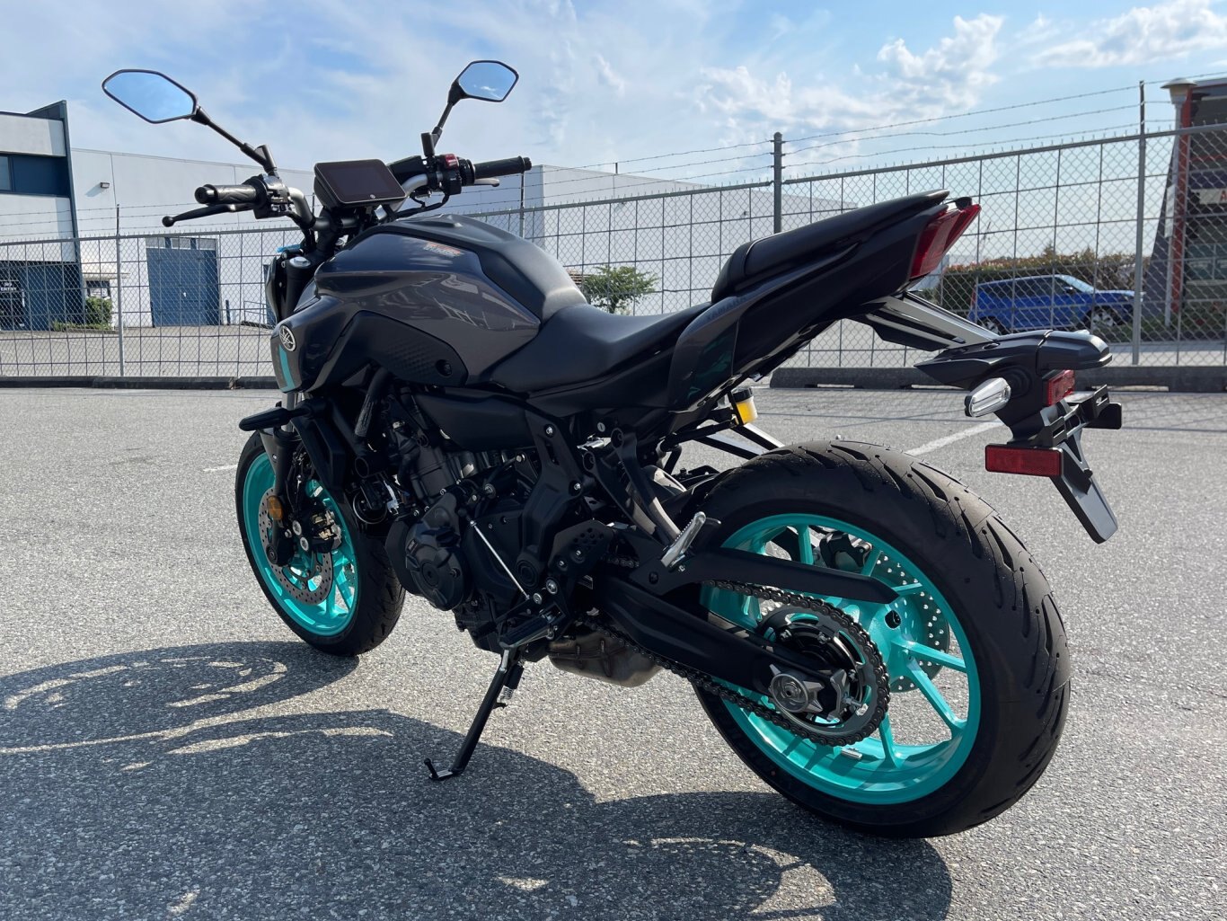 DETAILSDual-theme 5-inch full-colour TFT meter The most significant upgrade to the 2023 MT-07 is the 5-inch full-colour TFT display that provides a choice of two different screen themes. The Street Theme is a more modern looking layout with a bar-type tachometer at the top and digital speedo and gear selection readouts, while the Touring Theme has a more conventional circular analogue-style tachometer on the right of the screen and digital speedometer on the left. Smartphone connectivity with Y-connect app By downloading Yamaha’s free Y-connect app to their smartphone, riders can connect to their MT-07 via Bluetooth® and view incoming call, email and message notifications on the new TFT meter. Details:
