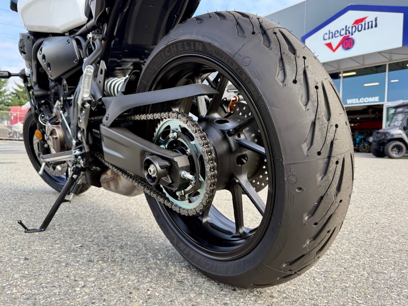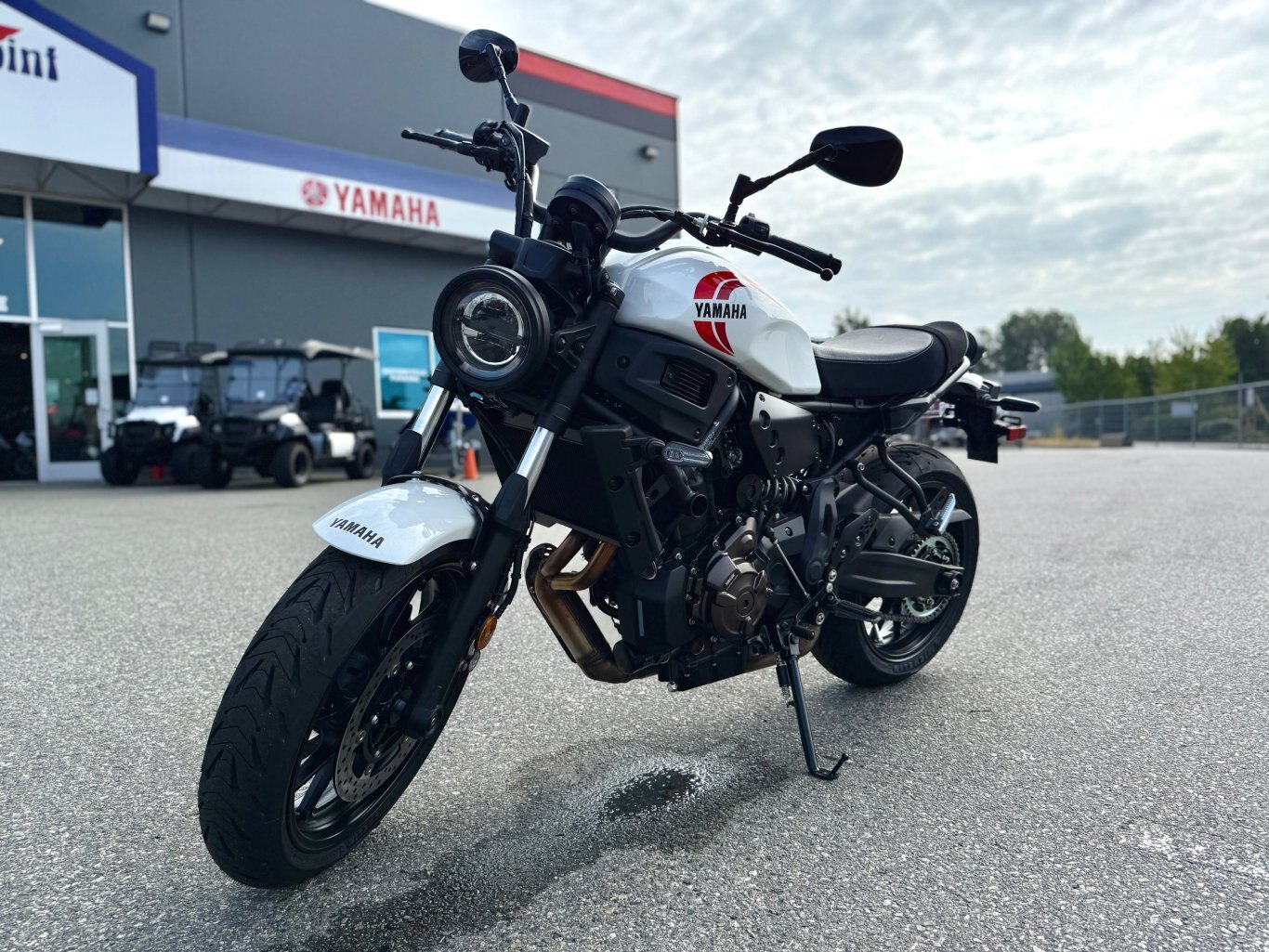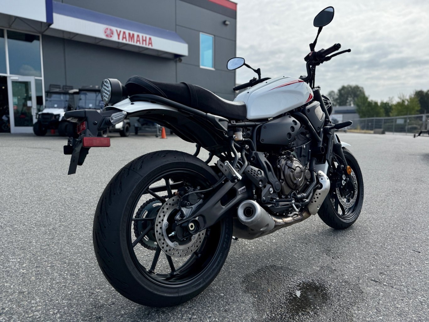 Based on the popular MT-07, the XSR700 is a beautiful blend of twin cylinder performance and eye catching "authentic sports" styling. The XSR incorporates most of the MT-07's key features including ABS equipped brakes. A natural riding position offers solid riding comfort while the short swingarm and lightweight design highlights the more serious sports side of the XSR. Tasty, timeless styling combined with plenty of Yamaha's latest technologies, the XSR is guaranteed to provide a fun, exciting ride.